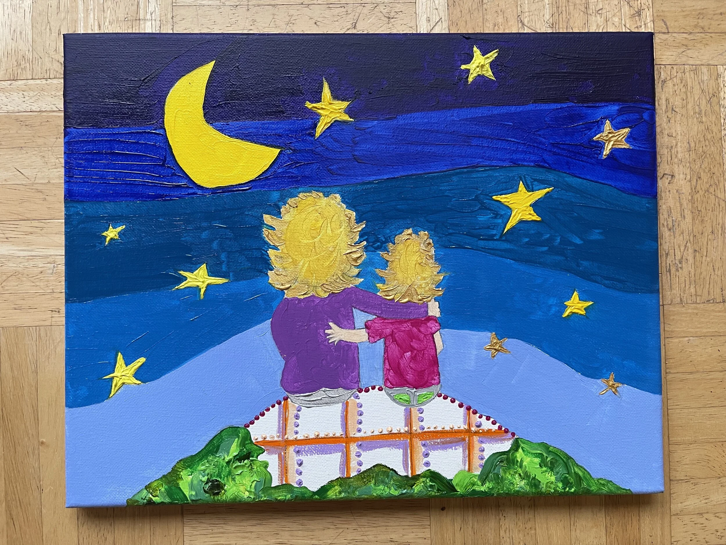 Of course I decided to paint Harvey Rose a piece to hang on her walls. Inspired by one of her books during our story time.